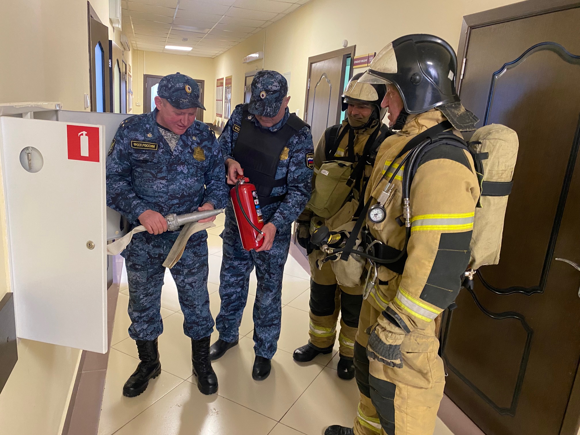 В соответствии с Планом специальной подготовки судебных приставов по обеспечению установленного порядка деятельности судов (далее — ОУПДС) УФССП России по Республике Татарстан на второе полугодие 2025 года в здании Балтасинского районного суда 18 июля 2025 года в период с 14:00 до 15:00 часов проведена тренировка по теме «Действия при возникновении возгорания или пожара в зданиях суда и судебных участков мировых судей») На тренировку привлекались: - судебные приставы по ОУПДС - 4 чел.; - сотрудники Росгаврдии - 2 чел.; - сотрудники МЧС РТ - 2 чел; - работники суда - 5 чел.; В ходе проведения тренировки отработаны следующие основные учебные вопросы: - организация взаимодействия между судебными приставами по ОУПДС, председателем суда, работниками суда, представителями Управления Судебного департамента при Верховном Суде РТ, сотрудниками, Росгвардии РТ и МЧС РТ по достижению слаженности в работе выработки практических навыков в планировании и реализации мероприятий при получении информации о возгорании электропроводки в здании суда. - тренировка судебных приставов по ОУПДС практическим действиям совместно с работниками суда, сотрудниками МЧС и органов внутренних дел при получении информации о возгорании в зданиях, помещениях суда. |